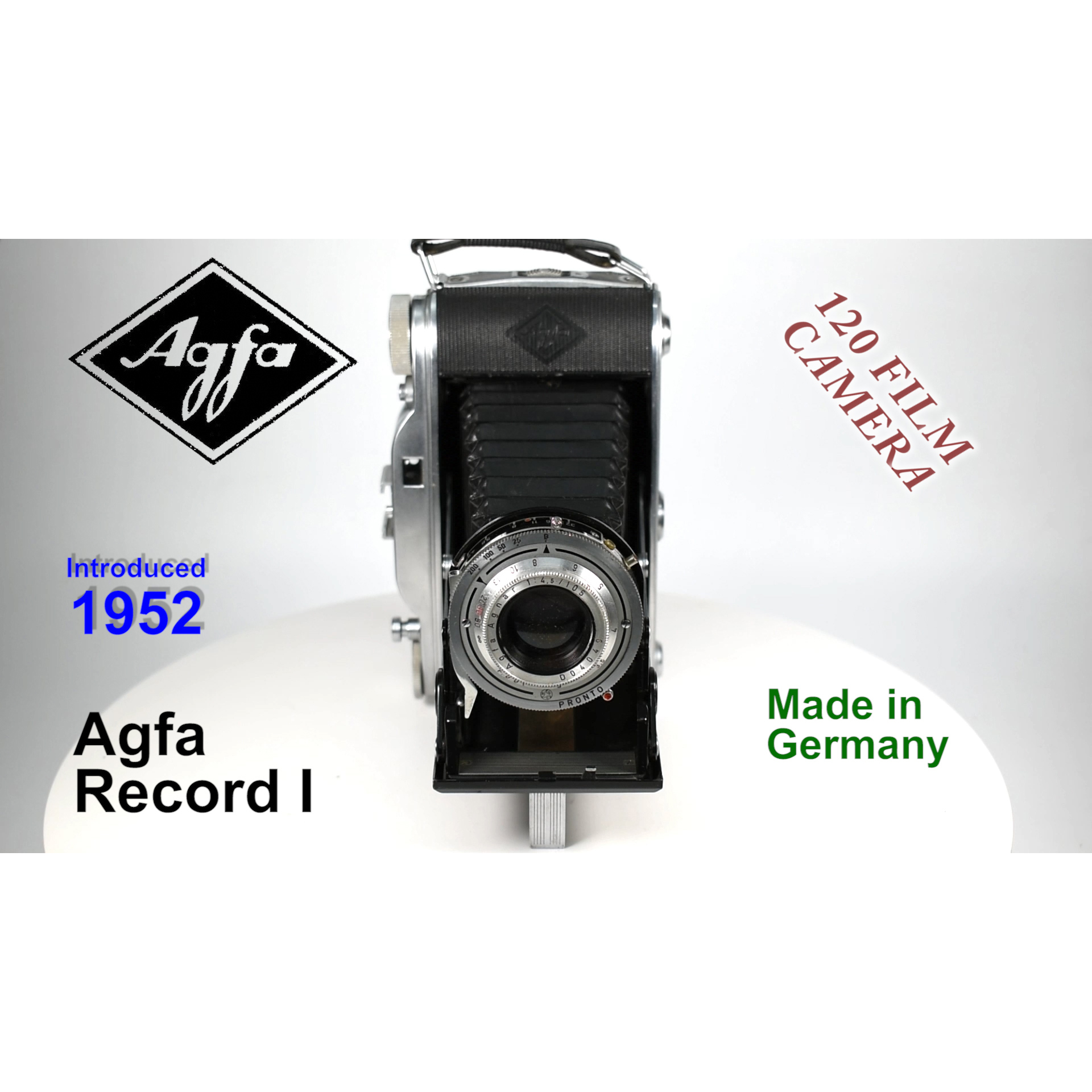 The Agfa Record I of 1952 was the first of 3 Record Models (I, II & III) it is a medium format folding viewfinder camera, built in Germany. It has a 105mm, f4.5, Agfa Agnar Lens in a Pronto shutter with speeds from 1/25-1/200 Sec + Bulb. It produces 6x9cm images on 120 roll film.